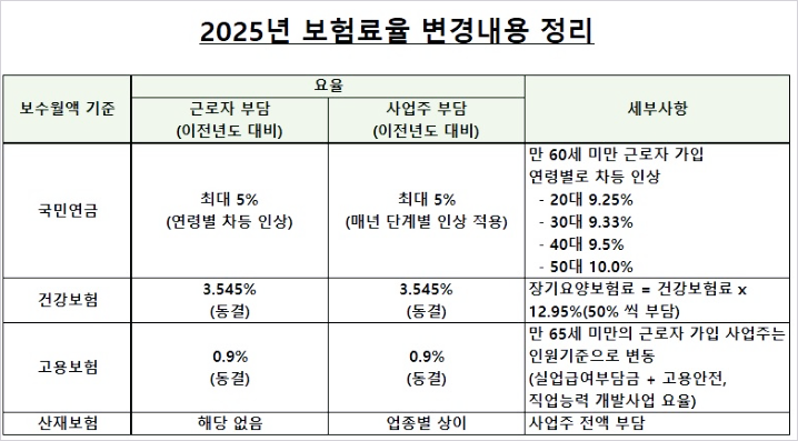 2025년 4대보험 요율 정리